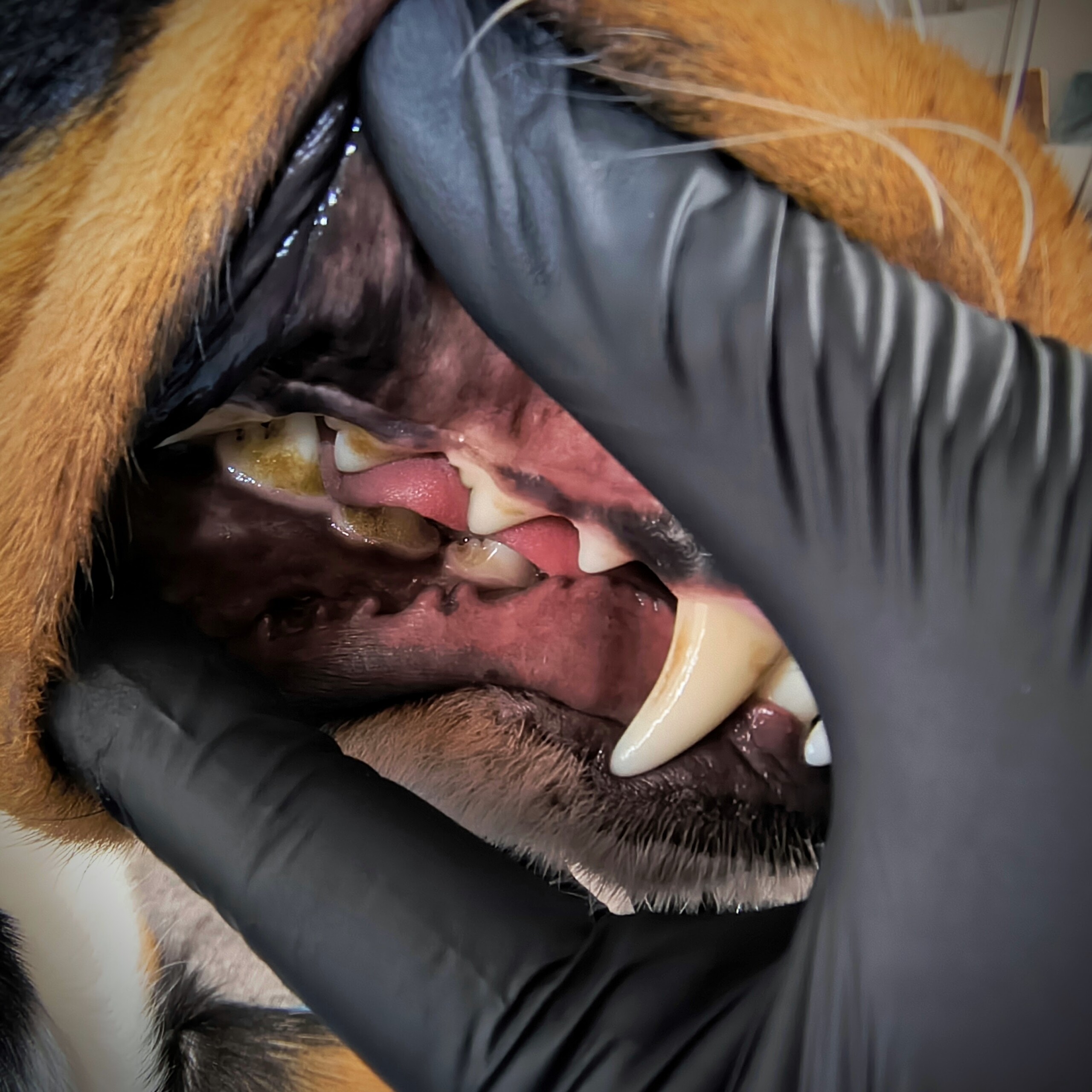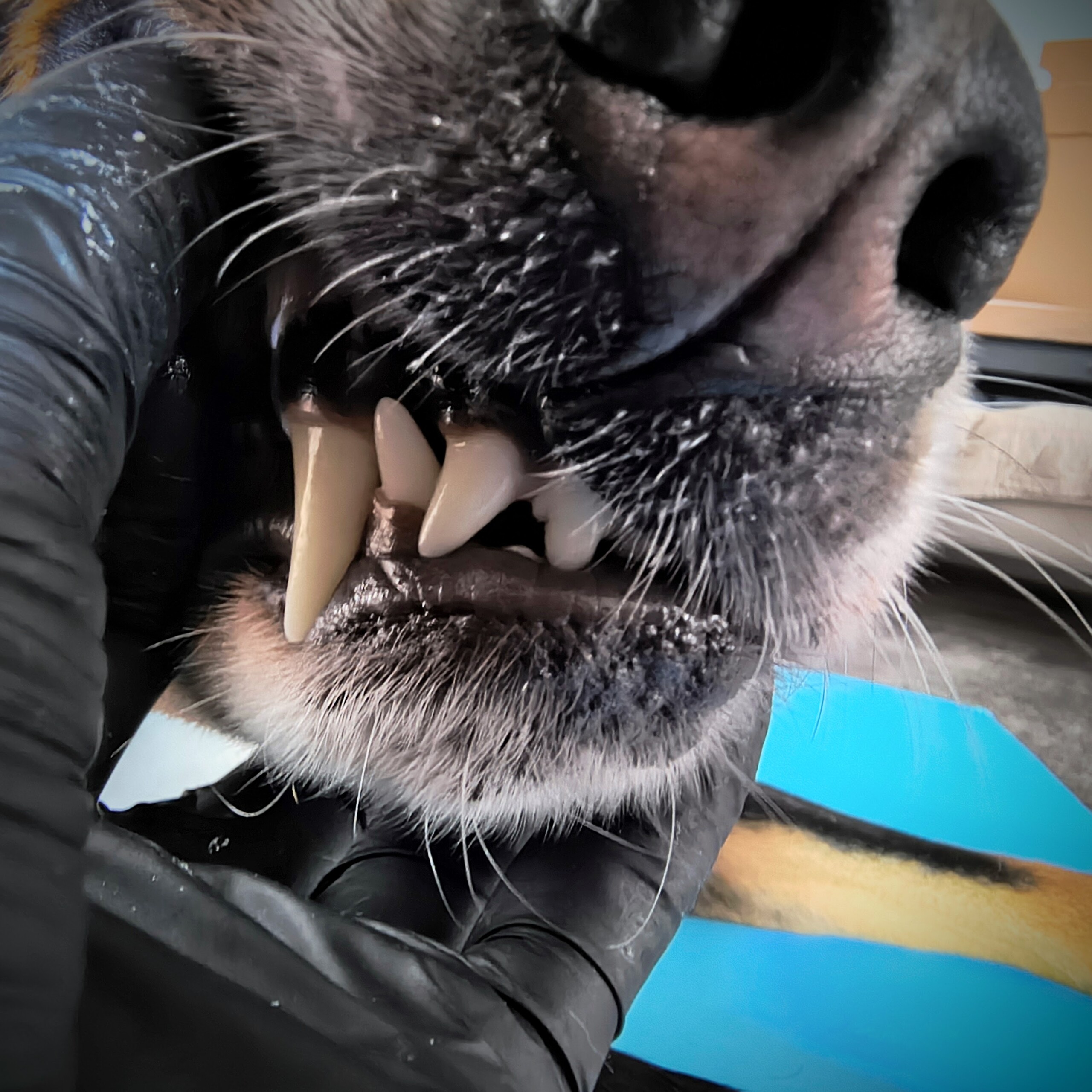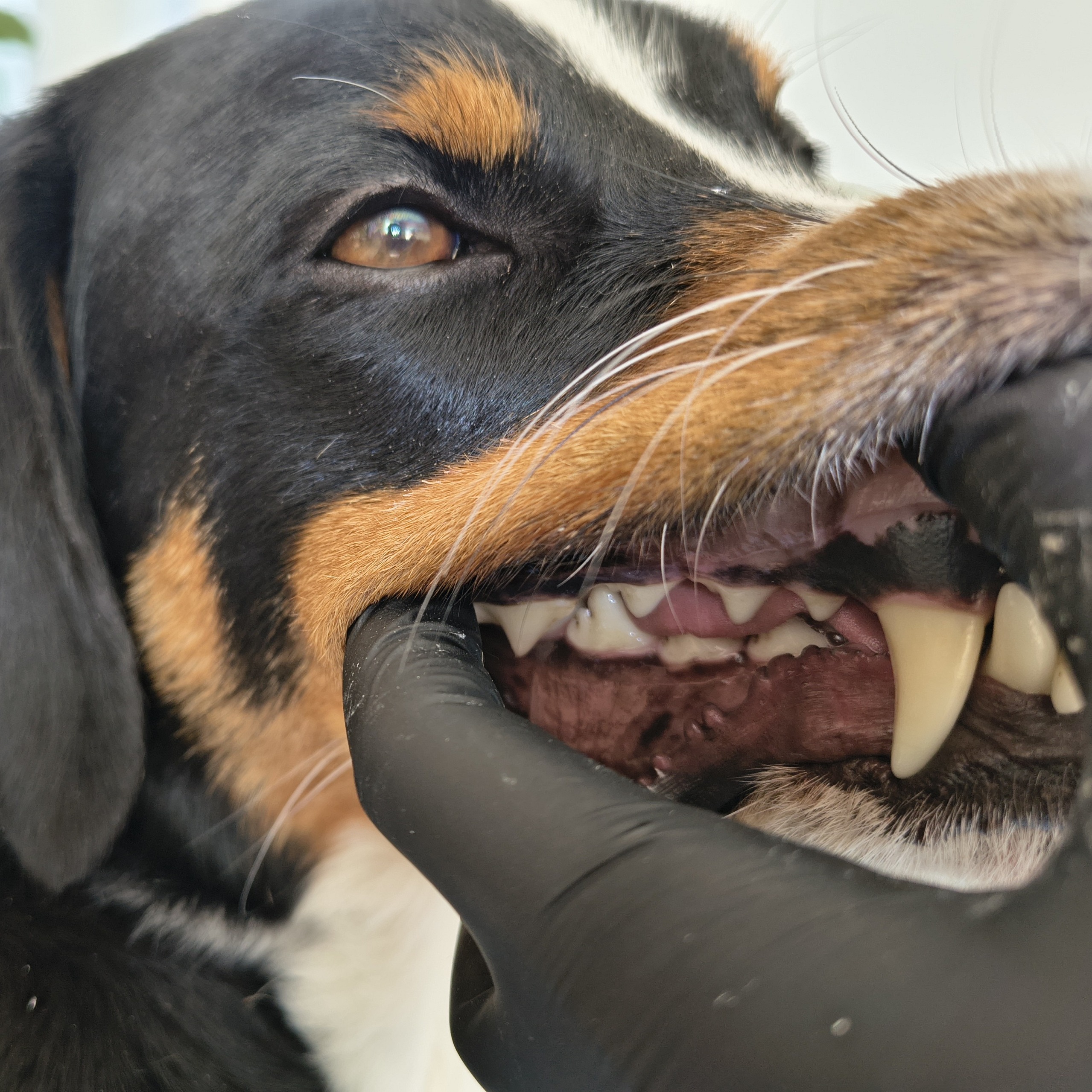 • Stark auffällige Befunde oder bereits lockere Zähne können nicht kosmetisch behandelt werden und müssen tierärztlich abgeklärt werden.